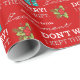 O papel de envolvimento divertido do Natal que diz "esteja pronto para falsificar o entusiasmo" e "não se preocupe. Eu mantive o recibo."