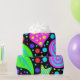 Épica e divertida, com um talento de oitenta! Formas divertidas e bolinhas coloridas em um fundo preto excelente. Inspirado pela roupa do shopping de Eleven do Stranger Things! As cores brilhantes fazem seus presentes parecerem extraordinários!