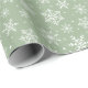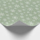 As estrelas brancas de flocos de neve do inverno nevam em papel verde sábio de enrolamento.