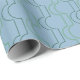 Este papel de embrulho tem um design de deco de arte de meio círculo verde conectando-se a linhas em um campo de azul.