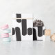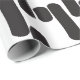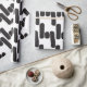 Papel de enrolamento abstrato, elegante, preto e branco moderno, com faixas simétricas em preto sobre fundo branco.