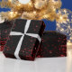 Bolinho de presentes de papel de embrulho para qualquer ocasião, celebração, aniversário, Natal, casamento... Lindos materiais de embrulho de presentes brilham brilhando brilho preto e brilho vermelho. Papel de embrulho de presente brilhante para ela. Foto de faíscas vermelhas não é uma falha real!
