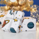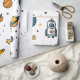 Este papel de embrulho bonito apresenta um tema espacial com astronautas, planetas e estrelas. Aproveite o seu novo papel de enrolamento do espaço externo!
