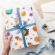Papel de enrolamento do espaço externo. Este papel de embrulho vibrante apresenta um design lúdico de naves espaciais, foguetes, estrelas e planetas em cores brilhantes e chamativas. Perfeito para adicionar um toque de diversão e entusiasmo a qualquer ocasião de dar presentes, este artigo certamente encantará entusiastas do espaço de todas as idades. Feito de materiais de alta qualidade, esse papel de embrulho é durável e atraente visualmente, fazer a escolha ideal para embrulhar presentes para aniversários, feriados ou qualquer evento especial. Adicione um toque de encanto intergaláctico aos seus presentes com este papel de embrulho único e colorido.