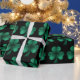 Belo papel de embrulho de presente da festa de São Patrício. Trevo brilhante com brilho verde inteligente. Foto de brilho de brilho!