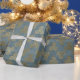 Lindas espirais celtas metálicas de cor dourada brilham sobre um fundo azul-cinza. Perfeito para a desvinculação de arte, artesanatos de papel ou embrulho de presente. Consulte a visualização da imagem "costura" para verificar se ela é aceitável.