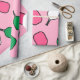 Exposição criativa de pickleball ou decoração de mesa com padrão de remos rosa quente e verde fresco.