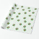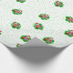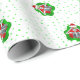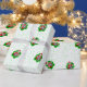 Este rolo de papel embrulhado é branco com pontos verdes e esqueletos divertidos dentro vibrantes, formas vermelhas e verdes segurando ornamentos nos olhos vestindo chapéus de Papai Noel para seus crepmas ou presentes de Natal.
