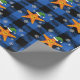 Papel De Presente Estaleiro do Natal Kawaii no padrão azul de búfalo