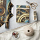 Papel De Presente Estampunk Clockwork Dourado e Teal