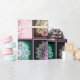 Este presente tem um estilo muito dúbio. Verde, Turquesa, lacre, vermelho, roxo, rosa, magenta, mandalas dão a ela um sentimento muito boêmico.