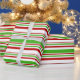 Este design de cores de Natal apresenta um padrão verde, branco e vermelho listrado. Pode ser divertido usar papel de embrulho como este ao preparar presentes ou presentes sendo dados em comemoração de um aniversário, casamento, aniversário ou qualquer outro evento.