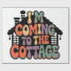 Tema vibrante de chalé com fonte ousada e borbulhante; paleta pastel de coral, menta, lilás e azul-turquesa transmite vibrações aconchegantes e bem-humoradas de fim de semana em um estilo retrô.