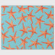 Papel de envolvimento alaranjado vermelho litoral náutico da estrela do mar com uma cor azul ciana do fundo. Excelente para projetos do decoupage!