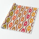 Este é um elegante padrão de starbursts atômicos modernos de meio século colocado em ovais coloridos entre formas onduladas em laranja, amarelo, vermelho e marrom.