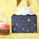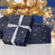 Papel De Presente Estrelas Celestiais Azul e Dourado Aquarela Capric