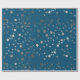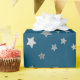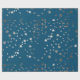 Estrelas prateadas dispersas em presentes e acessórios azuis da meia-noite.
