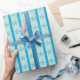 Celebre o verão com este papel embrulho de praia, com estrelas marinhas lúdicas e listras azuis. Perfeito para aniversários à beira-mar, festas costeiras e presentes temáticos de verão.