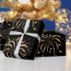 Papel De Presente Estrelas Douradas Festivas Negras Fogos de Artifíc