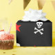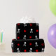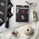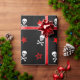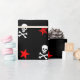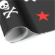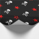 Papel de embrulho divertido com estrelas vermelhas, crânios e bósforos.