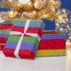 Papel de feriado divertido e colorido tem pequenas estrelas e flocos de neve nas listras.
