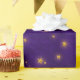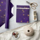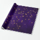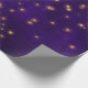 Papel de embrulho púrpura e dourado revestido de estrelas ouros luminosas.