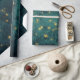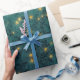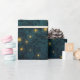 Papel de embrulho verde-temperado úmido embebido com estrelas ouros luminosas.