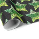 Papel De Presente Estrelas Negras e Verdes Padrão Natal Elegante
