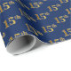 Este design de papel de embrulho apresenta o número ordinal "15" com uma aparência falsa/imitada em forma de ouro. Ele também apresenta um fundo de cor azul. Pode ser utilizada no acondicionamento de presentes para o décimo quinto aniversário de alguém, ou talvez para o décimo quinto aniversário de casamento de um casal casado, ou para qualquer outro evento ou ocasião de 15. [~Z0000129]