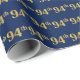 Este design de papel de embrulho apresenta o número normal "94º" com uma aparência falsa em ouro. Ele também apresenta um fundo azul. Pode ser usado no acondicionamento de um presente dado para o nonagésimo quarto aniversário de alguém, ou talvez para o nonagésimo quarto aniversário de casamento de um casal casado, ou para algum outro evento/ocasião de 94 anos. [~Z0000070]