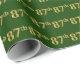 Este design de papel de embrulho apresenta o número normal "87º" com uma aparência falsa em ouro. Também apresenta um fundo verde. Pode ser usado no acondicionamento de um presente dado para o oitenta e sétimo aniversário de alguém, ou talvez para o oitenta e sétimo aniversário de casamento de um casal casado, ou para qualquer outro 87.º evento/ocasião. [~Z0000020]