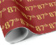 Este design de papel de embrulho apresenta o número normal "87º" com uma aparência falsa em ouro. Ele também apresenta um fundo vermelho. Pode ser usado no acondicionamento de um presente dado para o oitenta e sétimo aniversário de alguém, ou talvez para o oitenta e sétimo aniversário de casamento de um casal casado, ou para qualquer outro 87.º evento/ocasião. [~Z0000023]