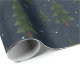 Wrap your gifts in a cozy evergreen tree pattern featuring simple pine trees and soft snow dots scattered across a deep dark blue background.