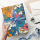 Essa trabalho de arte se rompe com um arranjo denso e animado de flores vibrantes, criando uma rica tapeçaria de cores e formas. Os motivos florais são renderizados em tons negros de laranja, azul, rosa e branco, entrelaçados com delicados trabalhos de linha que acrescentam detalhes e textura. As pétalas sobrepostas e os tamanhos variados das flores dão profundidade e energia à design, evocando um senso de abundância e celebração. A composição é divertida e intrincada, com equilíbrio dinâmico de cor e forma.