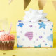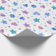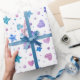 Este charmoso papel de embrulho "Congelado Fairy Tale" foi projetado com uma mistura de estrelas, corações, flores e bolinhas em tons legal de azul, roxo e rosa. Os padrões encantadores trazem uma magia, wintery se sentem perfeitos para uma comemoração de aniversário temática da Princesa de Gelo.