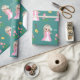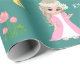 Fada Elfa Fofa e Flores em fundo azul turquesa Papel de Embrulho de Presente.