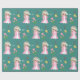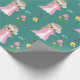 Papel De Presente Fada Elfa Fofa e Flores em Azul Turquesa