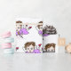 Uma bela fada do estilo de arte folclórica, desenhada à mão, com um presente de vestido roxo para o aniversário de uma menina.
