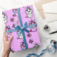 Papel de presente caprichoso Rosa Roxo Unicórnios, flores e borboletas Conto de Fadas.