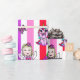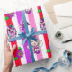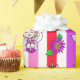 Fadas roxas e cor-de-rosa, flores e papel de embrulho de aniversário da menina das borboletas.