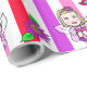 Papel De Presente Fadas, flores e borboletas, roxas e rosadas