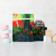 Pintura acrílica branca, colorida e vibrante em canvas, em cores vermelho vivo, verde, amarelo, azul, de Búlgaro Lumini (c).
