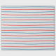 Um design simples, porém dinâmico, com faixas horizontais onduladas em tons alternados, azuis e vermelhos. As linhas que fluem evocam uma sensação de movimento e calma, lembrando as suaves ondas do oceano.