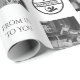 Dê esse presente embrulhado em pura alegria, risada e felicidade! Este papel de embalagem preto e branco permite adicionar seis fotos diferentes (fotos coloridas mudarão automaticamente para preto e branco neste modelo). As fotos estão espalhadas pelo jornal em meio a cinzas e quadrados brancos e "selos" que dizem "pura alegria", "risada e alegria" e uma declaração que declara esse presente se "de nós para você".