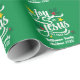 Personalized JOY IN JESUS Christian Christmas Wrapping Paper in GREEN with bold black script typography and holly. Ideal personalized greeting card during the festive season, with a strong Christmas message of joy in Jesus all year round. You can PERSONALIZE with your family or group name and year. Matching gifts available. Comes in other colors.