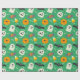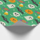 Papel De Presente Fantasma Verde Spooky, Halloween Bat & Skull