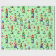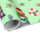 Papel De Presente Faróis de Natal Náuticos em Fundo Verde