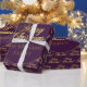 Ouro de Manuscrito de Manuscrito de Folha de Ouro de Feliz Natal Elegante Padrão de Texto em Feriado de Fundo em Púrpura Glossy Season ou Matte Gift Wrapping Paper, você pode adicionar nome ou texto