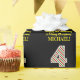 Este simples e divertido livro de Natal temido e aniversário sobre 25 de dezembro, o design de papel de empacotamento apresenta um grande número "4" com um padrão de listras vermelho/branco/verde, juntamente com a mensagem "Feliz 4º Aniversário e Feliz Natal", e um nome personalizado. O fundo é preto colorido. Esfregar papel como este pode ser divertido de usar ao embrulhar presentes que estão sendo dados a alguém cujo quarto aniversário cai na 25 de dezembro (Dia de Natal). [~Z0000406]