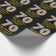 Este simples e divertido Natal temático e aniversário, tema de 25 de dezembro, encapsulamento de papel design apresenta um grande número de "70" com um padrão de listras vermelhas, brancas e verdes, juntamente com a mensagem "Feliz 70 de aniversário e Feliz Natal", e um nome personalizado. O fundo é preto colorido. Papel de embrulho como este pode ser usado para embrulhar presentes que estão sendo dados a alguém cujo setuagésimo aniversário cai no 25 de dezembro (Dia de Natal). [~Z0000406]